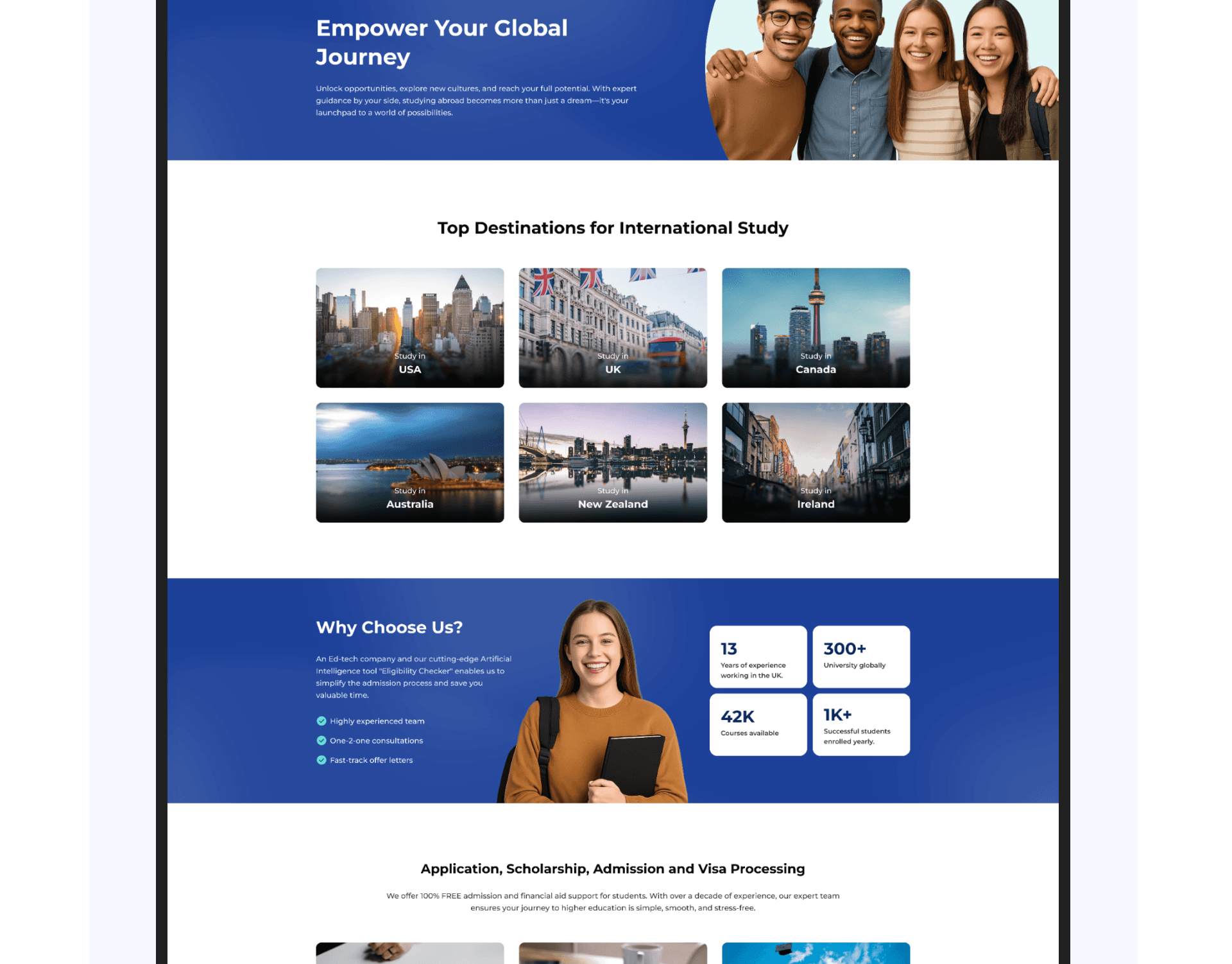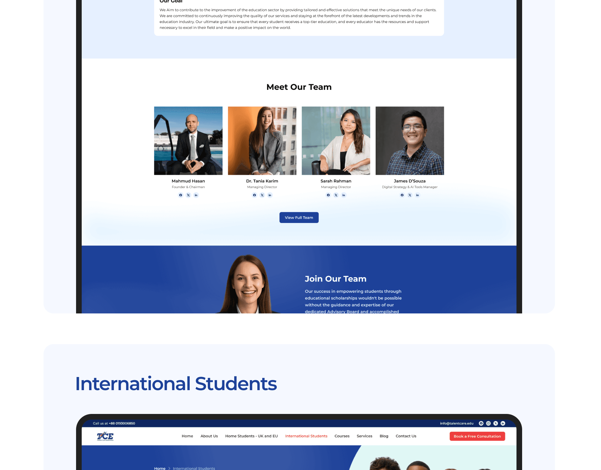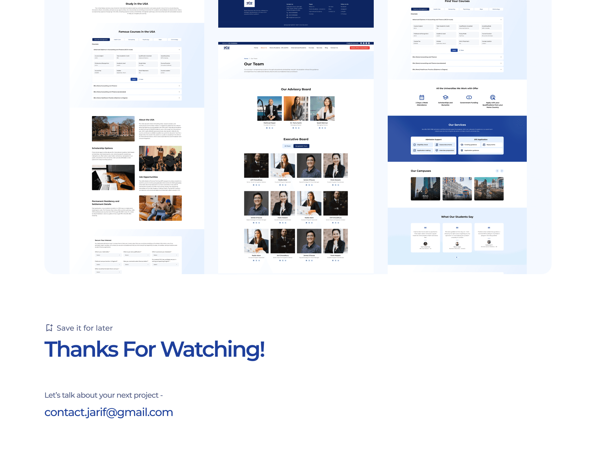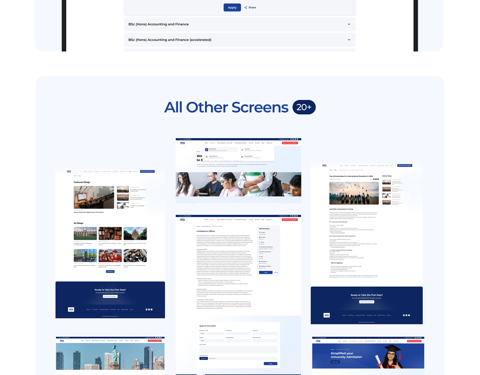 Talent Care Education (TCE) is a digital platform designed to help students explore international study opportunities. The website allows students to search universities, discover courses, explore study destinations, and receive guidance for studying abroad.